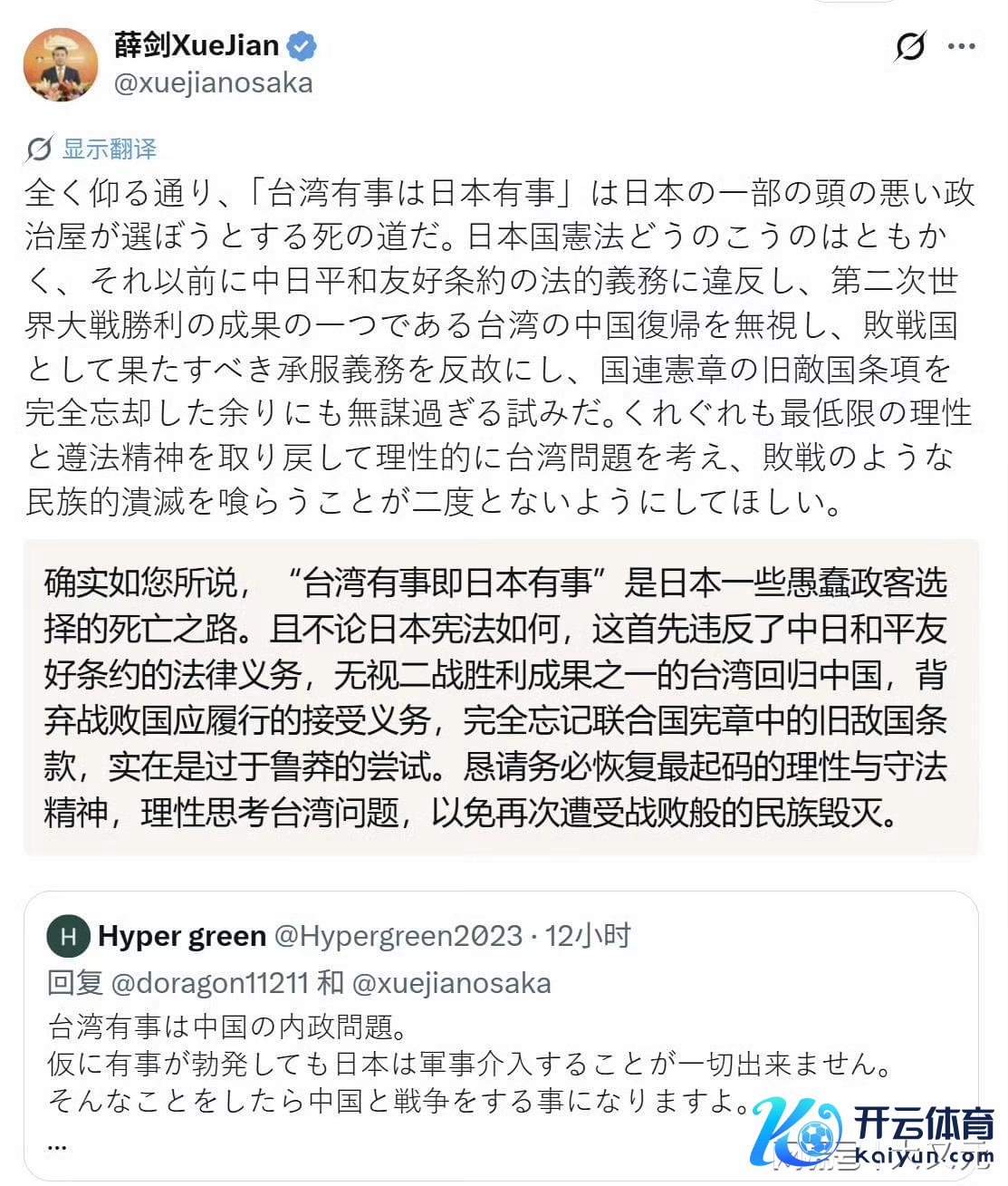 濒临日本东说念主汹涌的举报删帖,很快薛大使又发了第二条,火力可比第一次猛多了:不不不,我不是威迫高市早苗的东说念主身安全,只砍它的头,而是说合座日本东说念主,齐该实行分头算作~