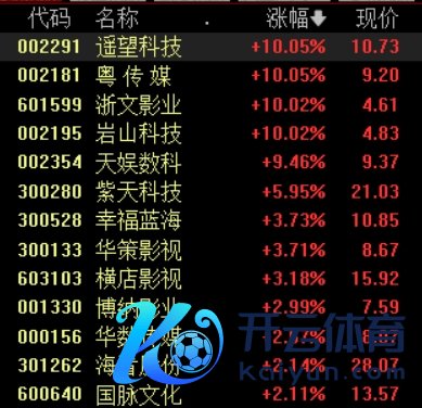 浙文影业、远看科技、粤传媒、岩山科技涨停,天娱数科、华策影视、博纳影业、横店影视等跟涨。