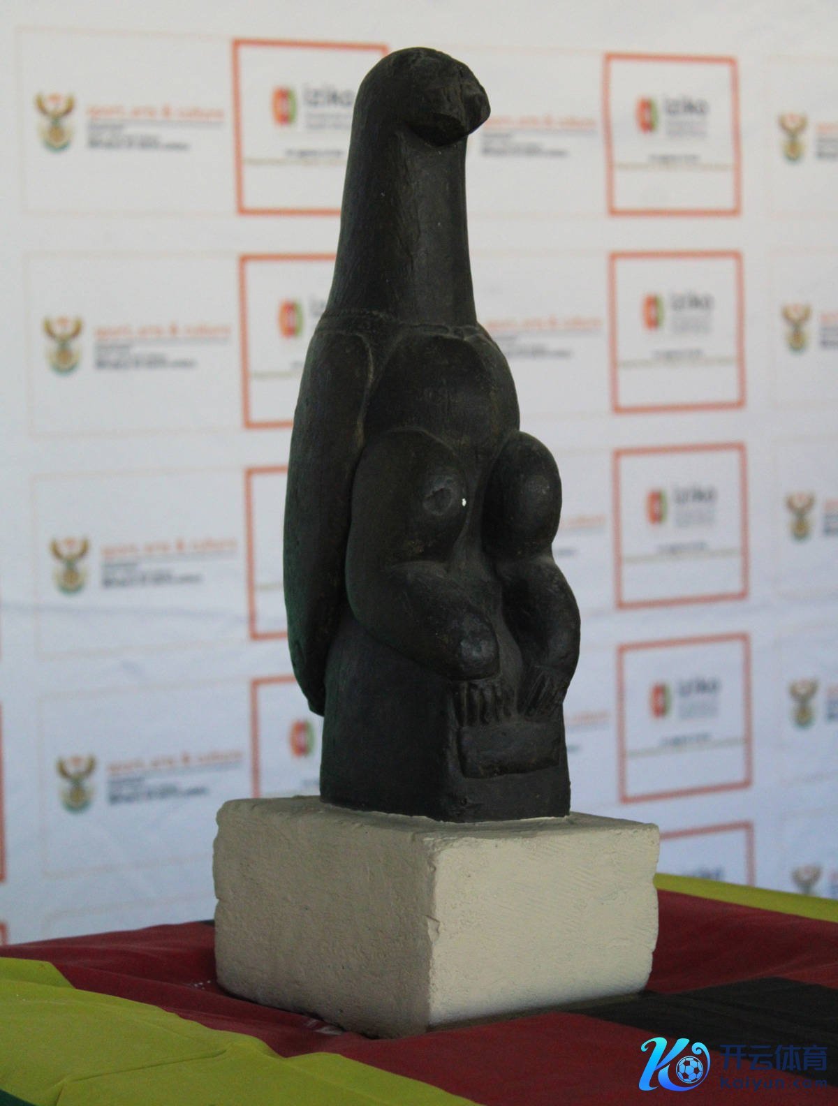 这是4月14日在南非开普敦的伊王人科南非博物馆拍摄的“津巴布韦鸟”石雕。新华社发(沙姬拉·泰比摄)