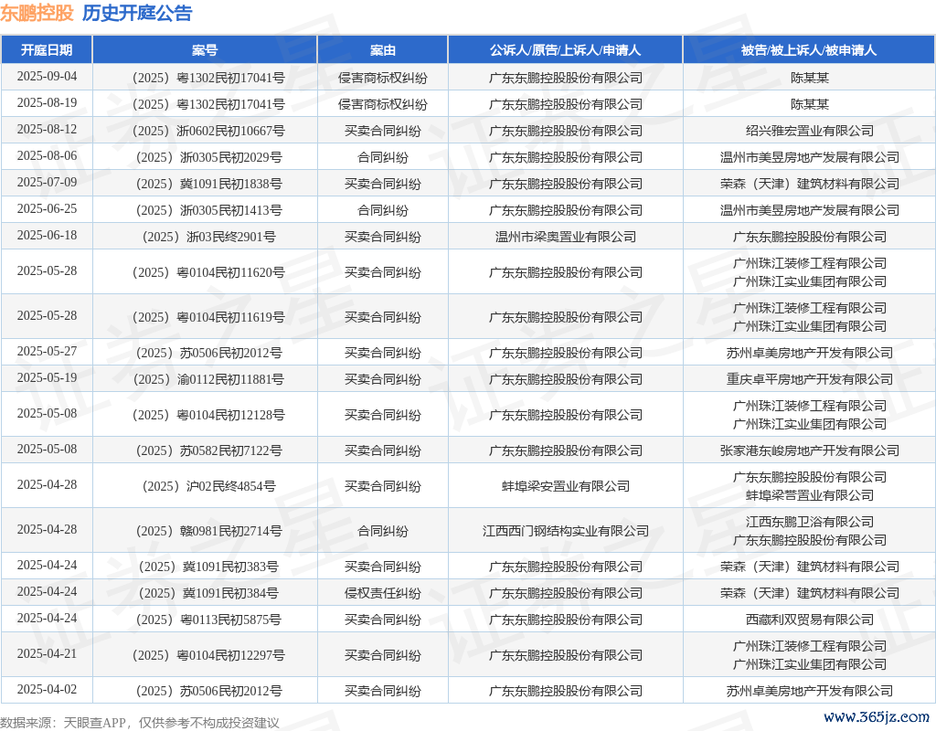 本站音问,把柄天眼查APP浮现,近日公布了一则广东东鹏控股股份有限公司行动原告/上诉东说念主的开庭公告,刺目本体如下: