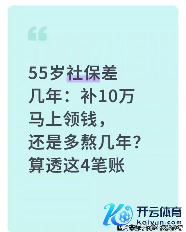 站在东说念主到55岁的十字街头,好多东说念主被那几年的社保年限拽住:差3年、差5年、差7年,遴荐一朝作念了就影响十几年生涯。要不要拿出几万、十几万去补缴,仍是接续行状多缴几年?把四笔账算知晓,就好作念决定。