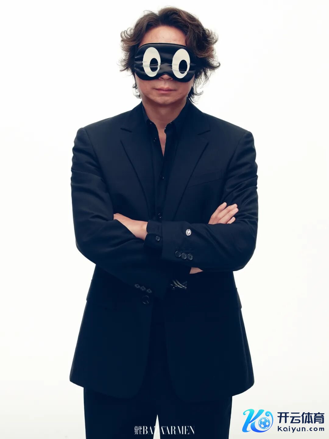 玄色西装、玄色西裤、玄色格纹印花衬衫均为 Burberry